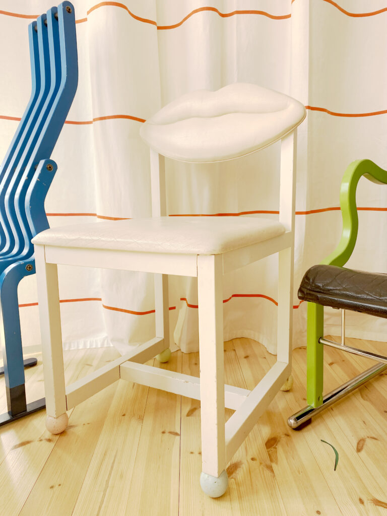 Kirpputorikierros Taidehaistelijan kanssa päättyi siihen, että Kiss-tuoli liittyi postmodernien tuolien perheeseen. Suosin aina kierrätettyjä tavaroita, ja niiden löytämisessä Taidehaistelijan palvelu on lyömätöntä. Vietin loppupäivän sohvalla rentoutuen – joka muuten on myös Taidehaistelijan löytö.